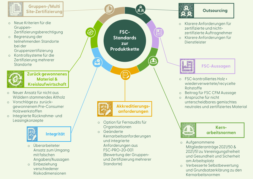 - Harmonisierung der COC-Anforderungen mit anderen FSC-Anforderungen sowie einschlägigen lokalen, nationalen und internationalen Rechtsvorschriften