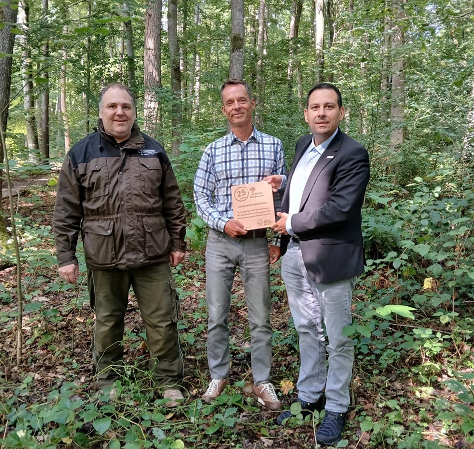 Saarbrücken zählt zu den waldreichsten Großstädten Deutschlands. 2212 Hektar dieser Waldflächen – der Stadtwald – sind FSC- und Naturland-zertifiziert. Anlässlich der feierlichen Übergabe des Jubiläumszertifikats betont Elmar Seizinger, Leiter Waldbereich bei FSC Deutschland: „Saarbrücken hat mit seiner frühen FSC-Zertifizierung gezeigt, dass gerade städtische Wälder Maßstäbe für nachhaltige Waldbewirtschaftung setzen können. Damit sendet die Stadt ein wichtiges Signal weit über die Region hinaus: Bevölkerungsnahe Wälder sind Orte der Begegnung und Bildung, die gleichzeitig zeigen, wie ökologische, soziale und wirtschaftliche Interessen in Einklang gebracht werden können.“